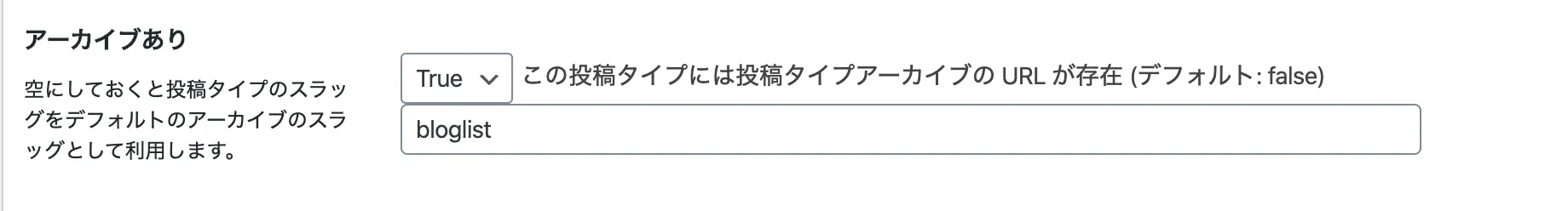 Custom Post Type UIのデフォルト設定では、「アーカイブあり(Has Archive)」がFalseになっています。これをTrueに変更する必要があります。