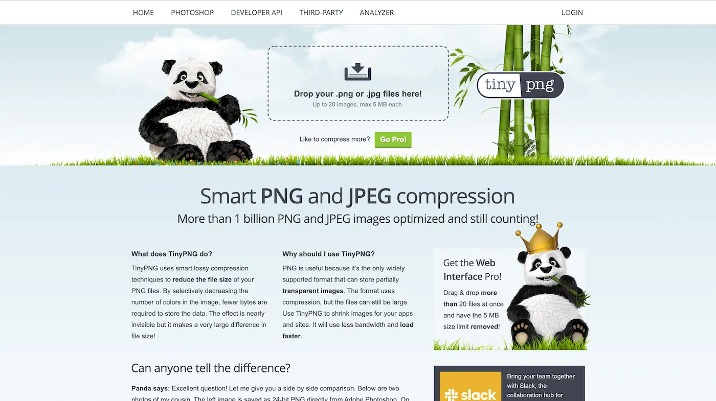 APIも提供されていて、月500枚まで無料。CI/CDに組み込んだり、WordPressプラグイン経由で自動圧縮したりもできます。